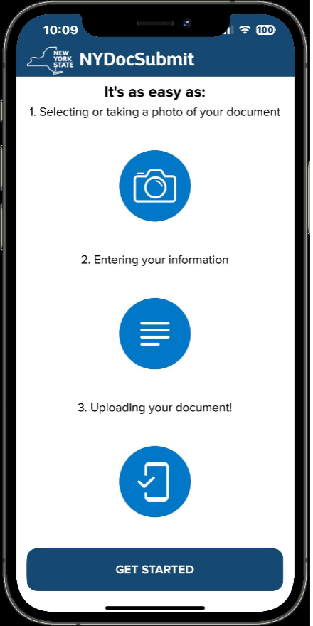 This secure app was created for New Yorkers to submit benefits paperwork electronically. You can download NYDocSubmit for free from AppStore or GooglePlay. To learn more, visit otda.ny.gov/programs/nydocsubmit.